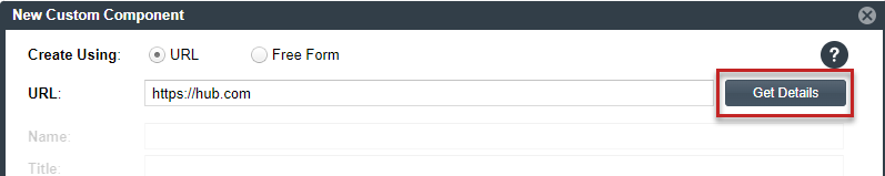 2. In the URL field, enter URL for the component. As you enter the URL, it is checked for an acceptable format (such as http://example.com), but not for validity.
