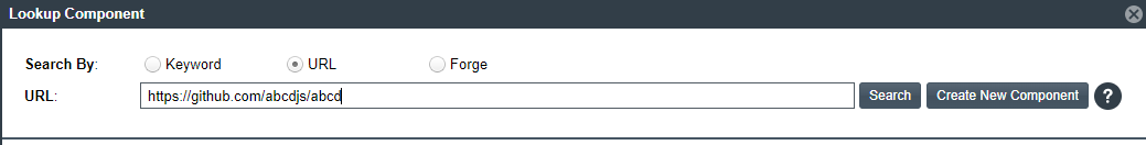 1. After you have performed Step 1: Access the “Lookup Component” Window, select the URL option either on the Lookup Component window or on the Components tab on the Global Component & License Lookup tab.