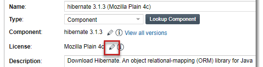 Editing a Custom License While Creating or Editing a “Component” Inventory Item