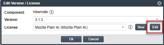 6. Continue with Step 2: Update the Custom License for details on how to edit the license. Once the edits to the custom license are successfully saved, they added to the Code Insight database and changes to the license name are reflected in the License dropdown list. You are returned to the Edit Version/License dialog.