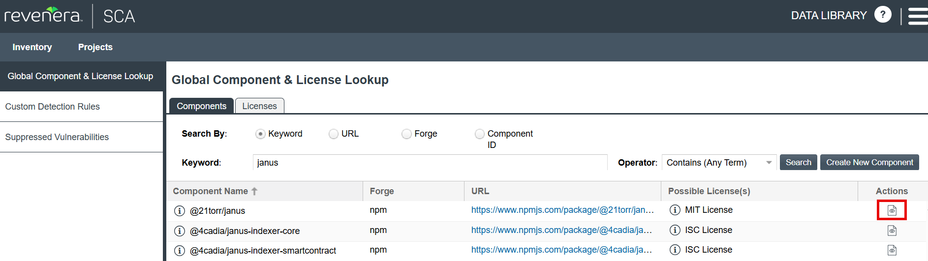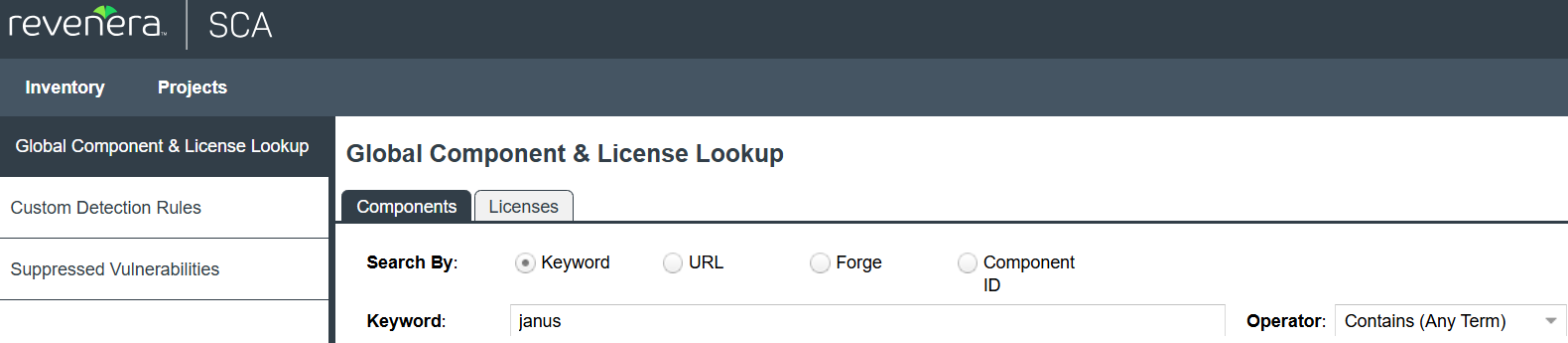 1. Open the Global Component & License Lookup tab, using the instructions in Accessing the Global Component & License Lookup Feature.