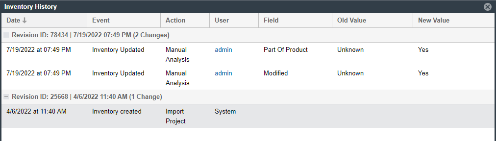 You have access to this same history from the Project Inventory tab. See Viewing the Update History for an Inventory Item in Project Inventory.