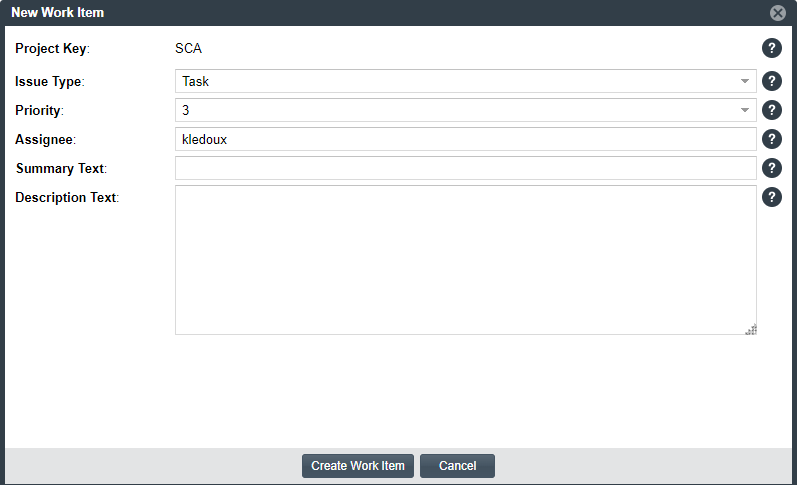 noteThe Create Work Item button on the Task Details dialog is enabled only if the project has been configured to an instance on the Jira server, as described in Associating the Project with an Application Life Cycle System to Create Work Items.